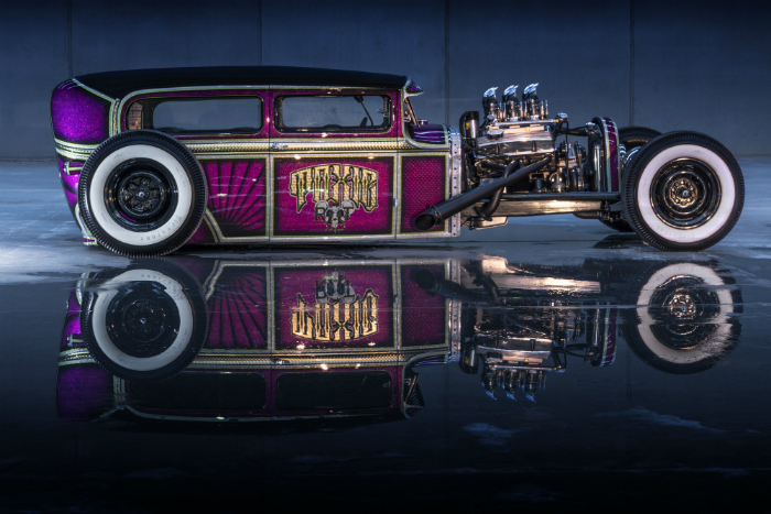 Avery Dennison Supreme Wrapping Film ColorFlow Series in Gloss Fresh Spring added a finishing touch to the wheels, and rippling swamp water was placed along the rocker panels, putting the startling new creature into its natural habitat. MetroWrapz added accents of red reflective, and a custom-cut acrylic dorsal fin on the roof.